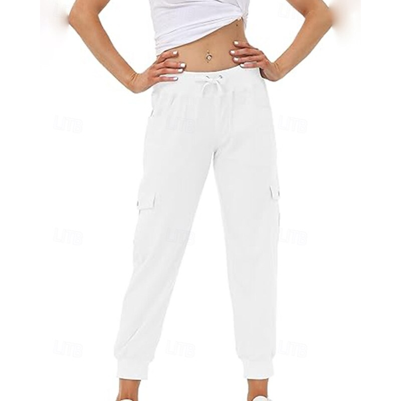 More information about Women's Cargo Pants Slacks Streetwear Casual Full Length Natural Plain Pocket Elastic Drawstring Design Soft Outdoor Vacation Going out Dark-Gray Navy Apricot Black Fall Regular Fit