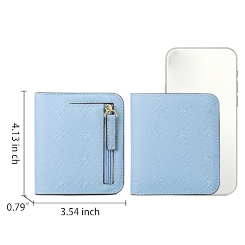 Womens Small Wallet Leather Rfid Block Bifold Slim Wallet Coin Purse Multi Card Holder Organizer With Zipper (A1-Blue, One Size) 6