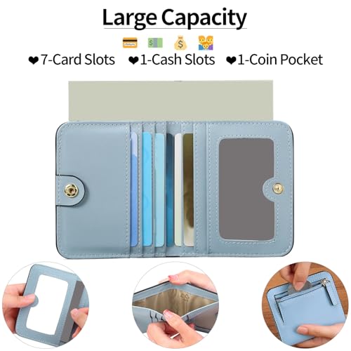 More information about Womens Small Wallet Leather Rfid Block Bifold Slim Wallet Coin Purse Multi Card Holder Organizer With Zipper (A1-Blue, One Size)