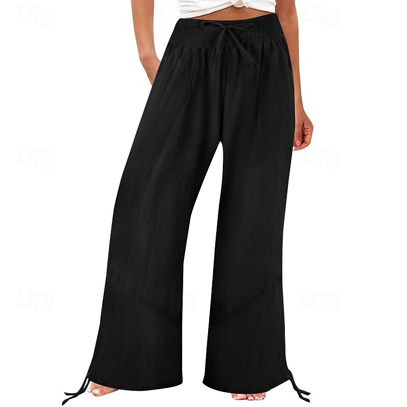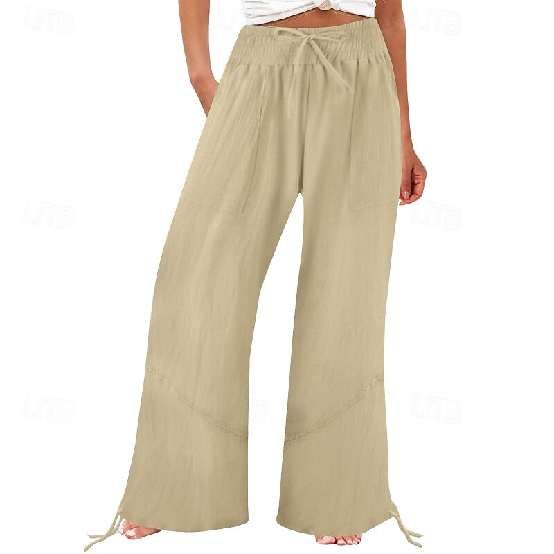 More information about Women's Cotton Linen Shorts Linen-Inspired Pants Cotton Linen Pants Fashion Full Length Natural Plain Pocket Elastic Drawstring Design Comfy Outdoor Comfortable Outdoor Street Going out Orange red