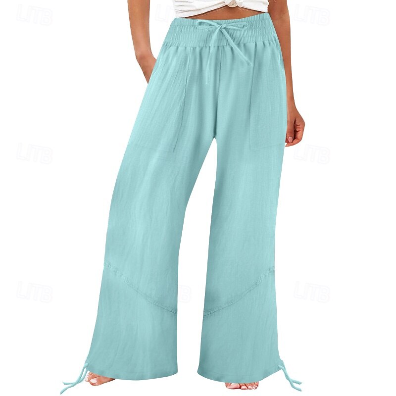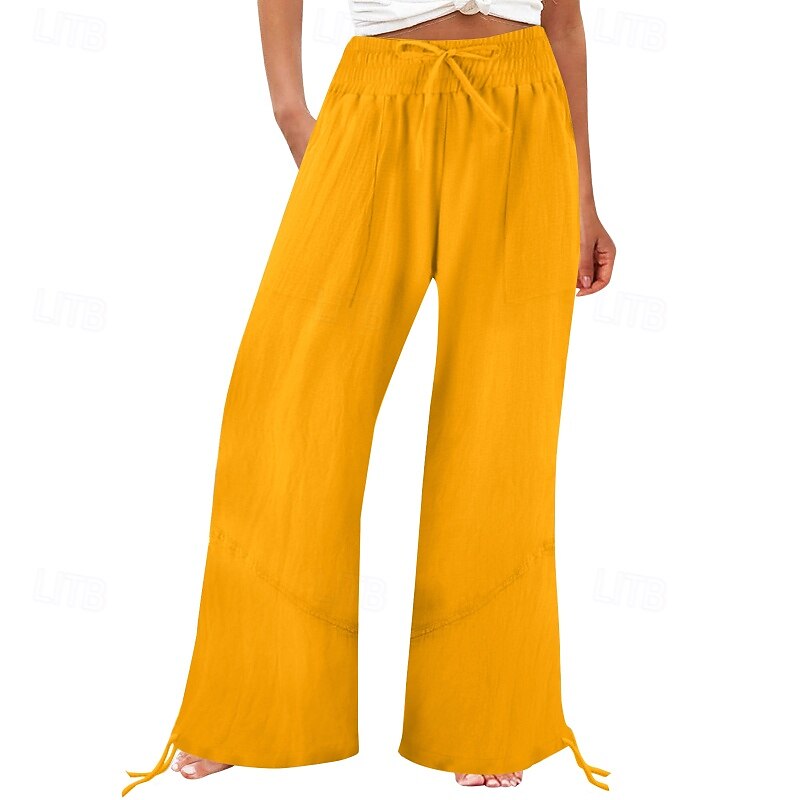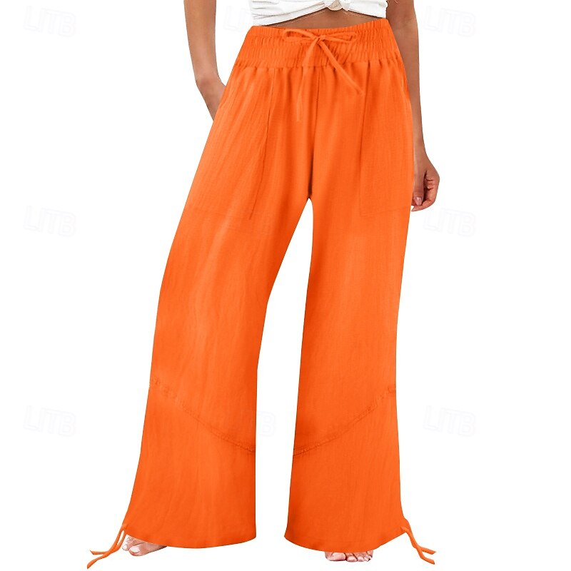 Women's Cotton Linen Shorts Linen-Inspired Pants Cotton Linen Pants Fashion Full Length Natural Plain Pocket Elastic Drawstring Design Comfy Outdoor Comfortable Outdoor Street Going out Orange red 19