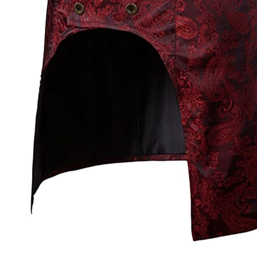 HOT ! Mens Gothic Steampunk Double Breasted Vest Sleeveless Paisley Tailcoat Vest Waistcoat Jacquard Brocade Suit Vest (Medium,Red)
