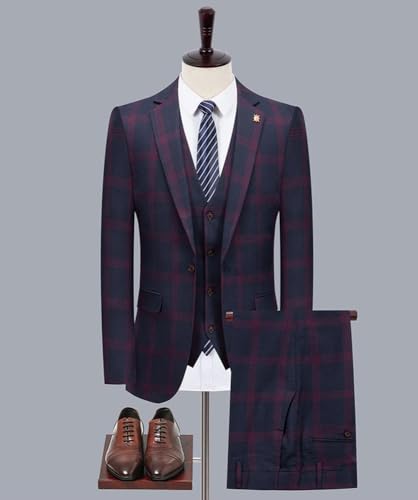 Kromoc Men's Plaid 3-Piece Suit One Button Jacket and Vest Pants for Casual Daily Dinner Tux 3