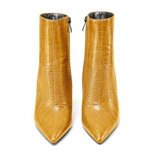 Castamere Womens High Block Heels Ankle Boots Pointed Toe Slip-on Boot with Zipper 10CM Heels 5