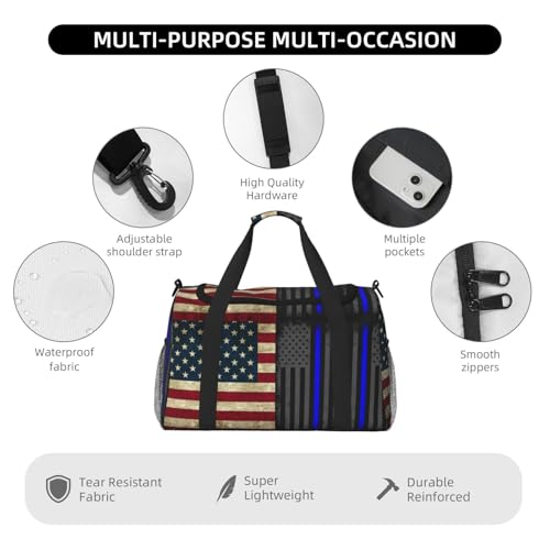 More information about Duffle Bag For Travel America Thin Blue Line Flag Travel Bag Carry On Bag For Womens Mens Gym Weekender Overnight Trips