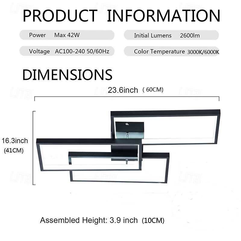 More information about LED Ceiling Light Modern Flush Mount Light Fixture Rectangle Lights for Bedroom Kitchen Living Room Ceiling Lamp 60cm 110-240V