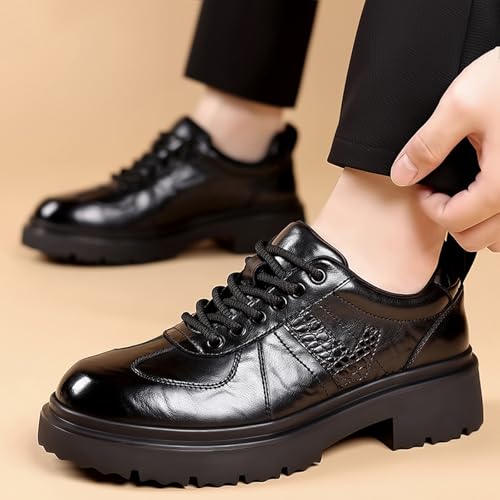 • MATERIAL: This men's thick-soled lace-up Oxford shoe is made of high-quality leather, which is durable and has a soft microfiber lining with good breathability. The overall softness ensures that your feet experience comfortable wearing.