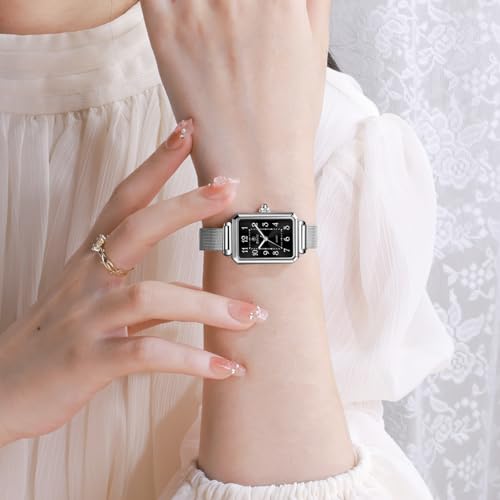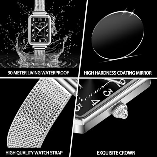 • 【Elegant and Stylish Design】This chic ladies watch features a sleek square dial with a smooth, polished surface that radiates sophistication. The elegant and minimalist design is complemented by a stainless steel mesh band, adding a touch of modern flair to any outfit.