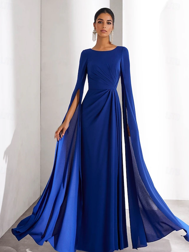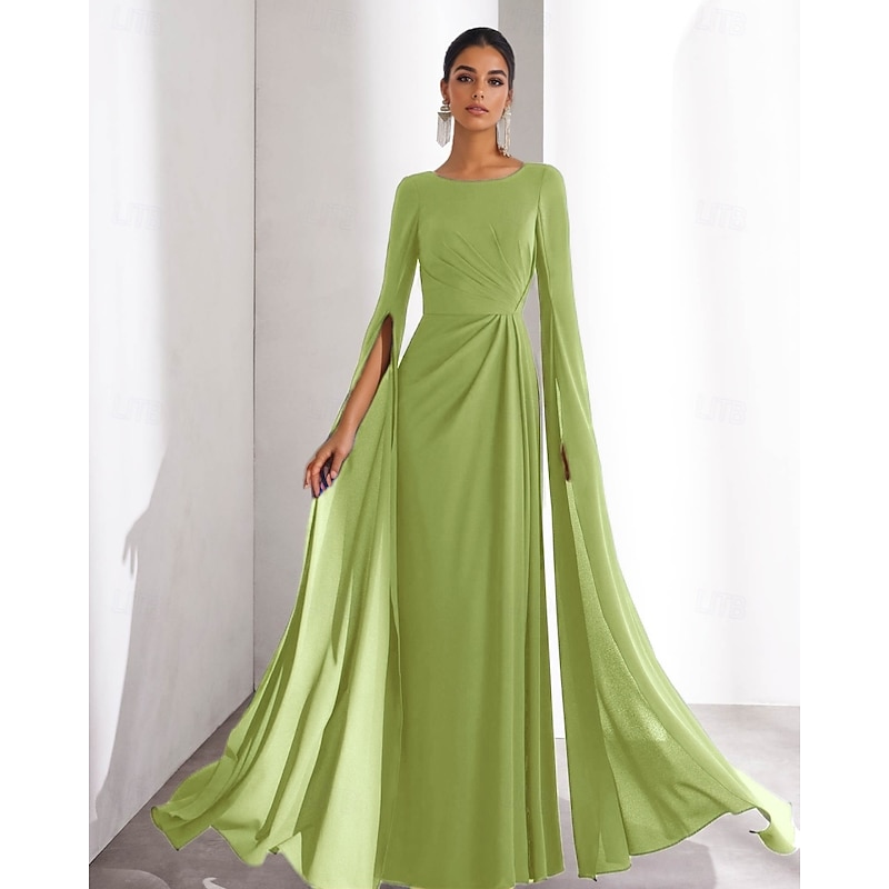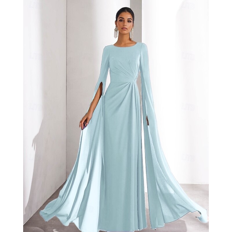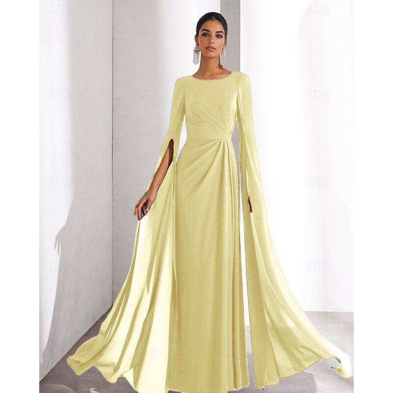 $129.99 - Chiffon A-Line Evening Gown Elegant Dress Formal Wedding Guest Floor Length Long Sleeve Boat Neck with Ruched 2025. Shop for cheap Formal / Black Tie online? Buy at lightinthebox.com on sale today!