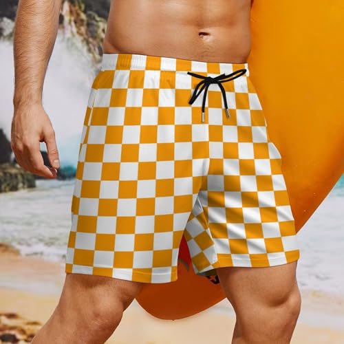 Orange Checkered Flag Men's Beach Shorts Quick Dry Swim Trunks with Pockets Compression Liner Boardshorts for Men 3