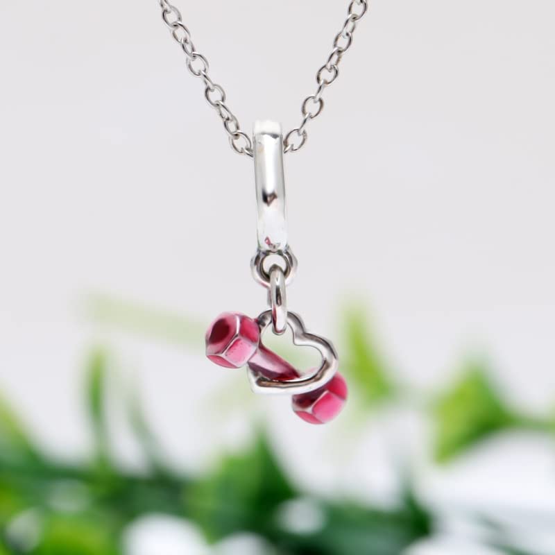 Dumbbell & Heart Dangle Charm 925 Sterling Silver Pendant,Jewelry Beads Gifts for Women Bracelet&Necklace 086 2