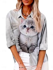 HOT ! Women's Shirt Cat Dog Active Daily Stylish Long Sleeve Shirt Collar Regular Tops Daily Holiday Buttons Print Navy Blue Gray Summer Spring Fall