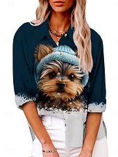 More information about Women's Shirt Cat Dog Active Daily Stylish Long Sleeve Shirt Collar Regular Tops Daily Holiday Buttons Print Navy Blue Gray Summer Spring Fall