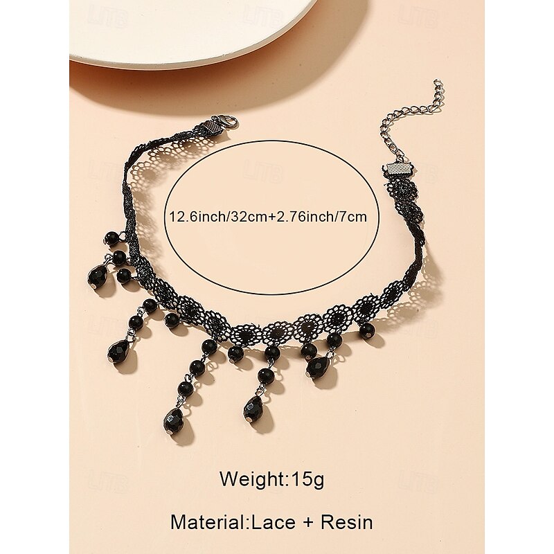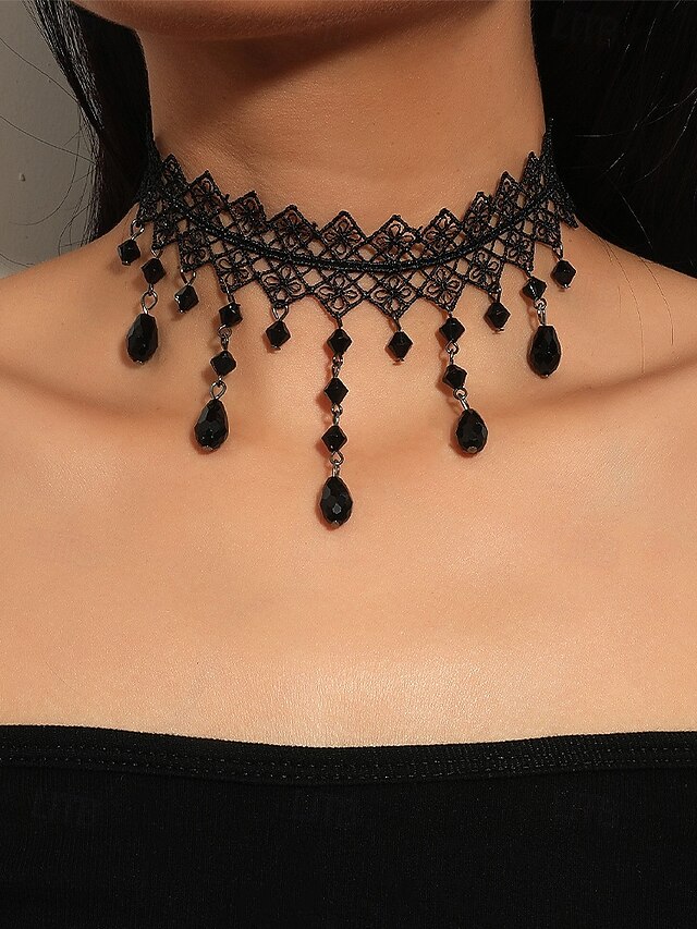$7.99 - Women's Halloween Gothic Lace Necklace, Vintage Black Beaded Pendant Necklace, Perfect for Role-Playing, Parties and Costume Events, Available in Multiple Colors 2025. Shop for cheap Halloween Accessories online? Buy at lightinthebox.com on sale today!