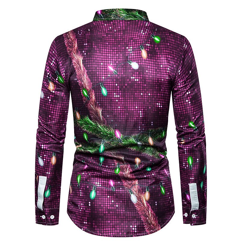 Men's Ugly Christmas Shirt Long Sleeve Shirt Turndown Christmas Street 3D Print Red Blue Purple Green Print Button-Down Clothing Apparel Fashion Designer Casual Soft 5
