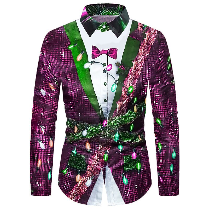 Men's Ugly Christmas Shirt Long Sleeve Shirt Turndown Christmas Street 3D Print Red Blue Purple Green Print Button-Down Clothing Apparel Fashion Designer Casual Soft 10