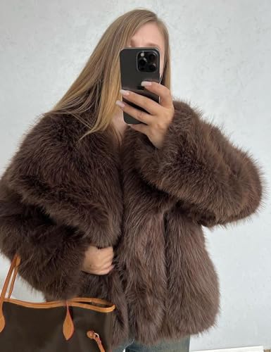 • Women faux fur coat features fluffy faux fur with cozy smooth lining, collared v neckline, long sleeves, cropped length, single button closure, solid color, two hidden pockets, versatile and chic fluffy winter coat.