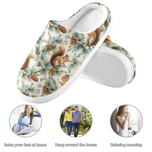 Fuzzy Memory Foam Slippers for Women/Men Squirrel Pine Cone Pattern Fluffy Winter House Shoes Indoor and Outdoor 1