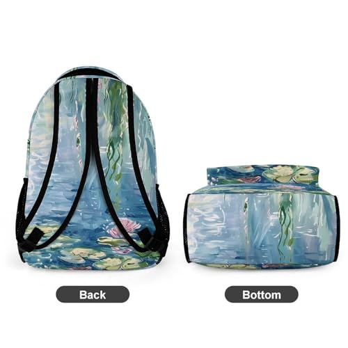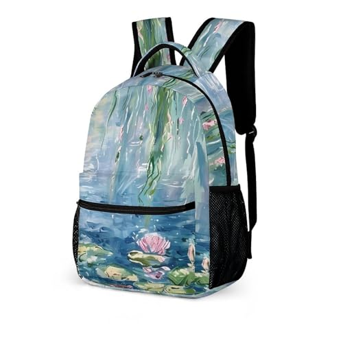 Lotues Willow Trees Water Lilies Cute Backpack Travel Work Bag with Water Bottle Pocket Adjustable Padded Shoulder Straps Daypack 6