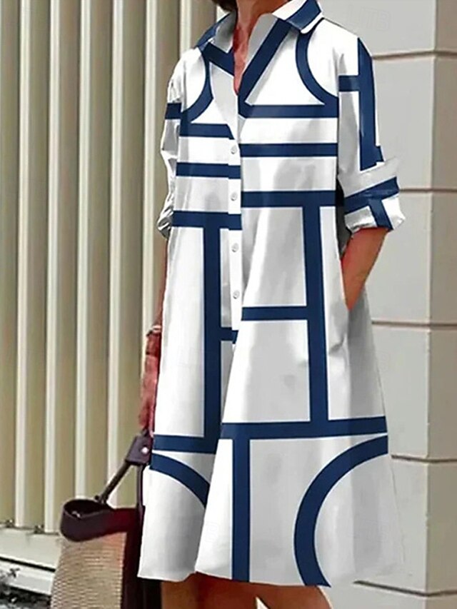 $26.99 - Women's Midi Dress Shirt Dress Casual Dress Fashion Modern Daily Beach Weekend Regular Fit Geometric Long Sleeve Shirt Collar Black Yellow Wine Blue Spring Fall 2025. Shop for cheap Print Floral Dresses online? Buy at lightinthebox.com on sale today!