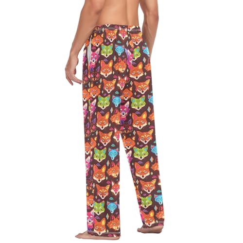 Mens Cotton Pajama Pants Sleep Lounge Pj Bottoms Sleepwear with Pockets Drawstring S Fox Face 6