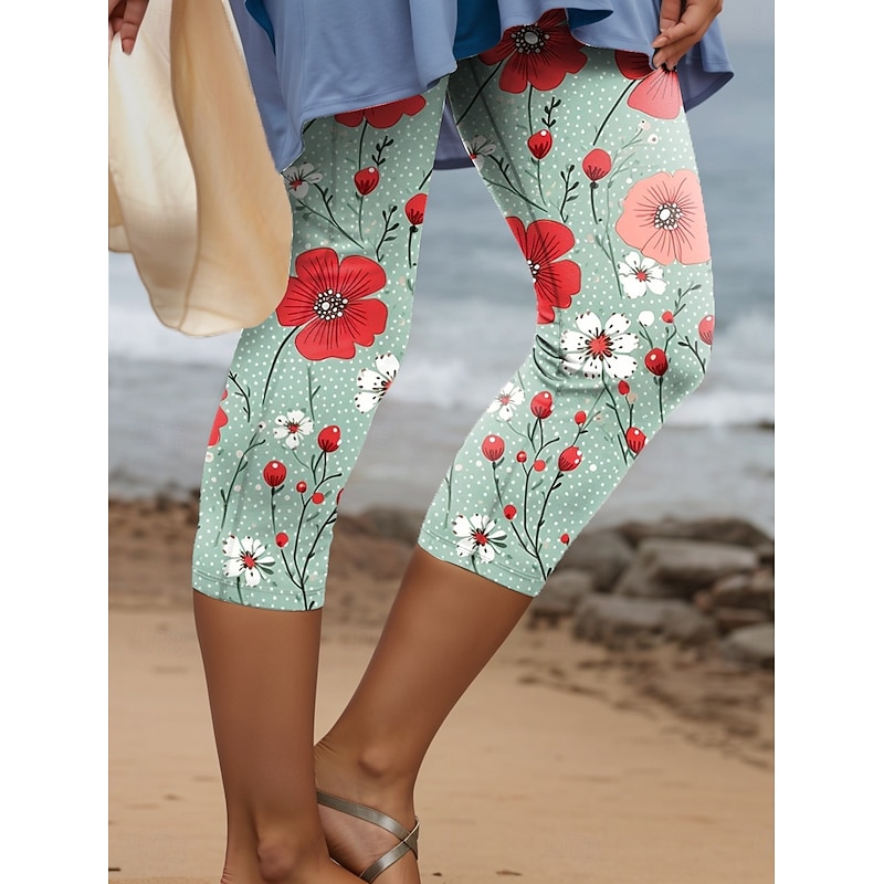 Women's Leggings Pants 3D Print High Elasticity Fashion Streetwear Full Length High Waist Floral Thermal Warm Breathable Soft  Outdoor Daily Pink Blue Purple Green Fall Winter Regular Fit 21