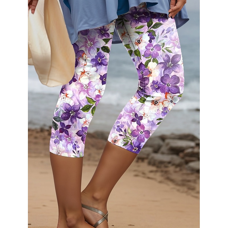 Women's Leggings Pants 3D Print High Elasticity Fashion Streetwear Full Length High Waist Floral Thermal Warm Breathable Soft  Outdoor Daily Pink Blue Purple Green Fall Winter Regular Fit 23