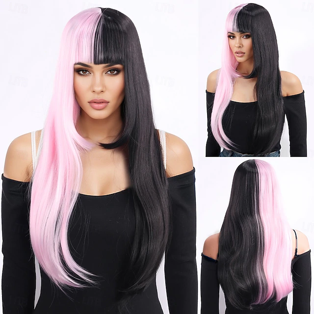 $23.99 - Synthetic Wig Curly Weave Natural Straight Layered Haircut With Bangs Machine Made Wig 26 inch A1 Synthetic Hair Women's Classic Comfortable Color Gradient Pink Black 2025. Shop for cheap Synthetic Trendy Wigs online? Buy at lightinthebox.com on sale today!