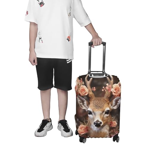 Luggage Cover Elastic Washable Suitcase Cover Dust-Proof Deer Wearing Flowers Travel Luggage Cover Fashion Suitcase Protector Thickened Baggage Cover Fit 18-32 Inch Luggage L, white 5