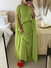 More information about Women's Long Dress Maxi Dress Cocktail Dress Wedding Guest Dress Chiffon Dress Ruched Dress Fashion Outdoor Date Tea Party Regular Fit Plain Short Sleeve Crew Neck Green Summer