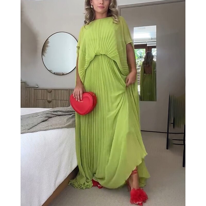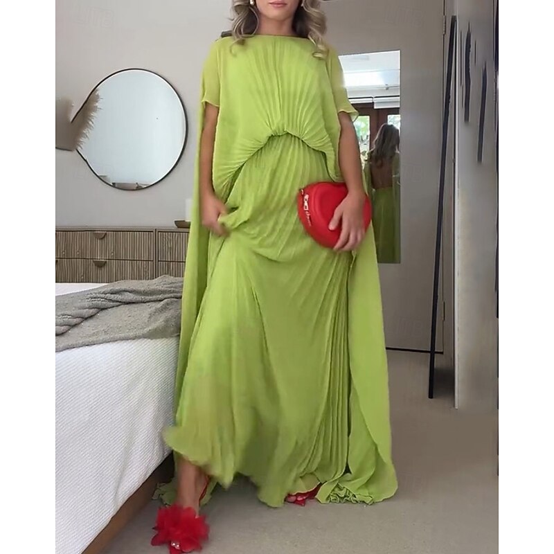 HOT ! Women's Long Dress Maxi Dress Cocktail Dress Wedding Guest Dress Chiffon Dress Ruched Dress Fashion Outdoor Date Tea Party Regular Fit Plain Short Sleeve Crew Neck Green Summer