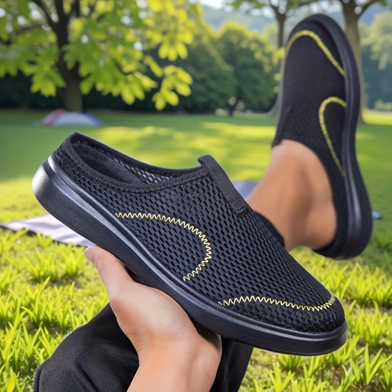 Summer Men's Casual Sports Shoes, Half-Support Design, mesh for Breathability and no Stuffiness, no Laces for Lazy People to wear on one Foot, Large for Home and Commuting 1