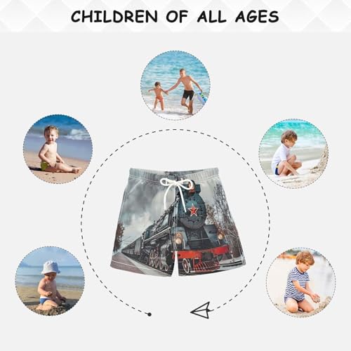 Pigsaly Boys Swim Trunks 3D Old Black Soviet Steam Train Boys Board Shorts Swimsuit Swimwear Summer Bathing Suit 5T 4