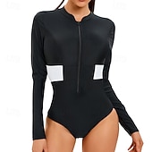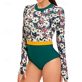Women's Bathing Suit Rash Guard UV Sun Protection UPF50+ Long Sleeve Swimwear Zip Up Swimming Surfing Printed Summer Spring Autumn 21