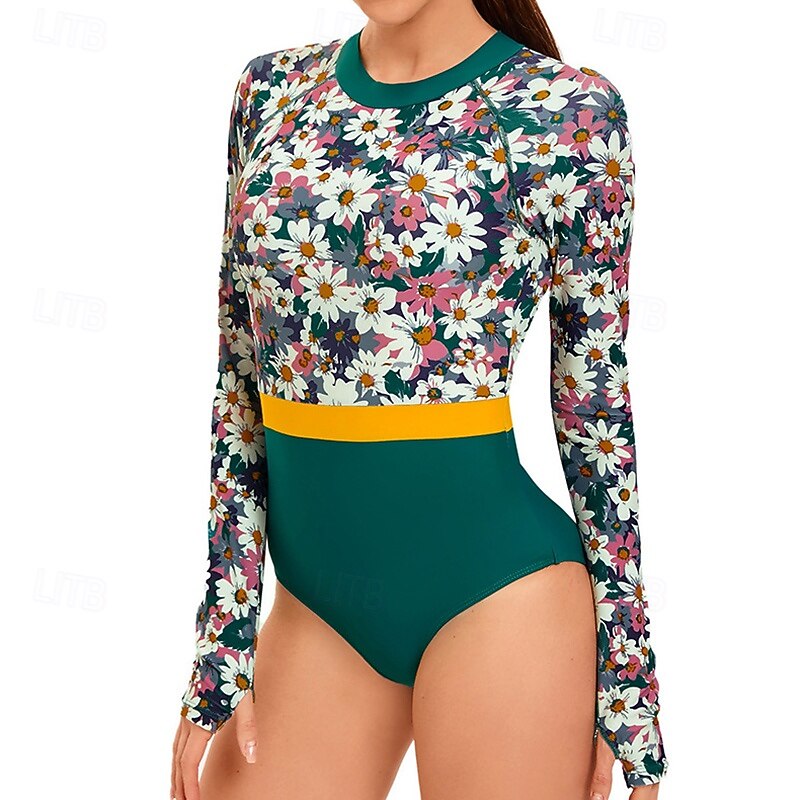 Women's Bathing Suit Rash Guard UV Sun Protection UPF50+ Long Sleeve Swimwear Zip Up Swimming Surfing Printed Summer Spring Autumn 36