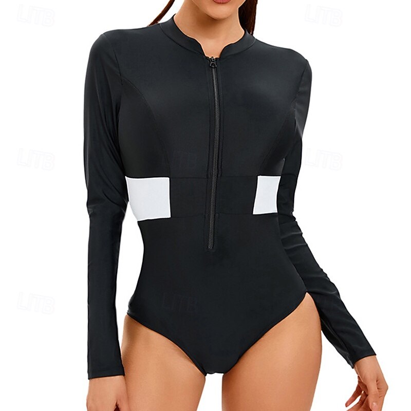 Women's Bathing Suit Rash Guard UV Sun Protection UPF50+ Long Sleeve Swimwear Zip Up Swimming Surfing Printed Summer Spring Autumn 23