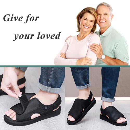 Men's Open Toe Sandals, Adjustable Wide Width Elderly Shoes, Non Slip Lightweight Slippers, Women's Walking Sandals Arthritis Edema Shoes for Swollen Feet 1