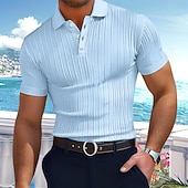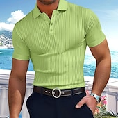 More information about Men's Polo Golf Shirt Business Casual Ribbed Polo Collar Classic Short Sleeve Basic Modern Solid Color Knitted Ribbed Spring & Summer Regular Fit Light Blue Pink Green Polo
