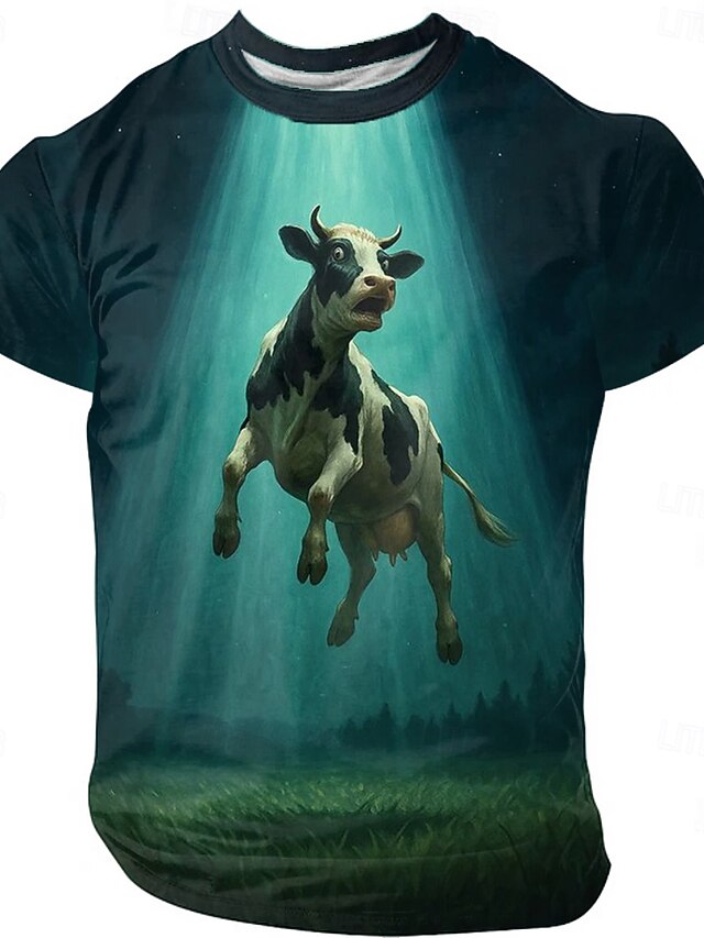 HOT ! Halloween Men's Cow T Shirt Short Sleeve T shirt 3D Print Crew Neck Shirt Exaggerated Designer Horror Party Street Holiday Blue Green Summer Spring All Seasons Clothing Apparel S M L XL XXL XXXL