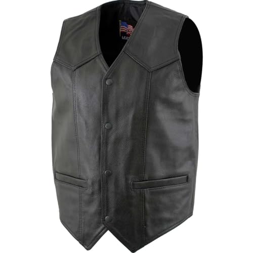201 Men's Black 'Classy' Leather Motorcycle Rider Vest with Snap Button Closure - Medium 1