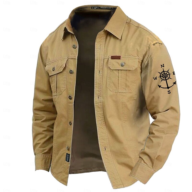 More information about Men's Nautical Compass Work Shirt Western Shirt Cargo Shirt Long Sleeve Casual Tactical Sports & Outdoor Going out Winter Spring & Fall Turndown Print Black Army Green Blue Khaki