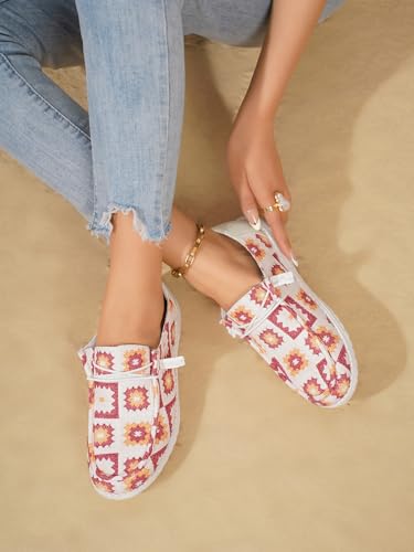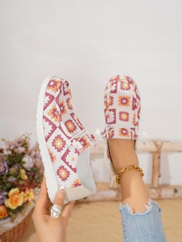 HOT ! White Geometric Print Loafers & Boat Deck Shoes, Artistic Walking Shoes with Colorful Patterns & Non-Slip Sole, Lightweight Breathable Casual Shoes for Men & Women