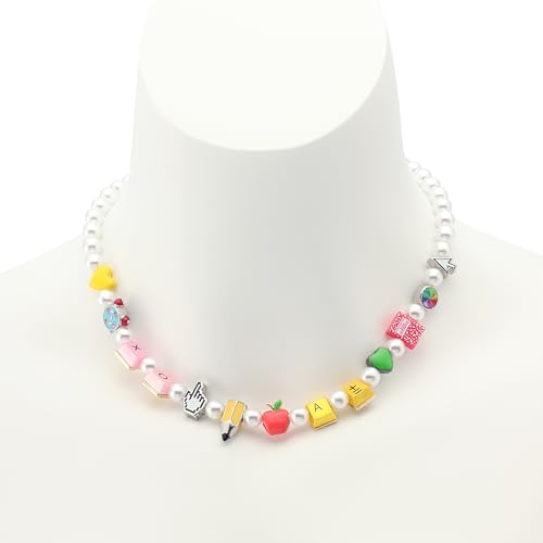 • TRENDY NECKLACES : It's back to school with this whimsical necklace! Delicate pearl strand collar necklace featuring back to school inspired mixed motif beads.