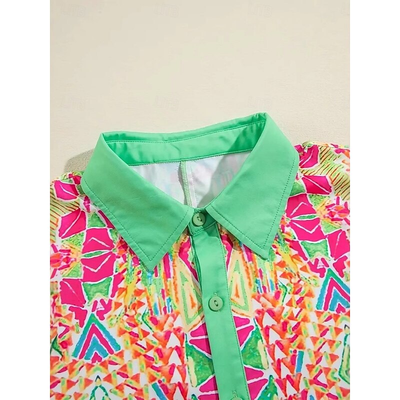 More information about Women's Mini Dress Shirt Dress Casual Dress Summer Dress Vintage Daily Beach Weekend Regular Fit Geometric Color Block Short Sleeve Shirt Collar Green Summer