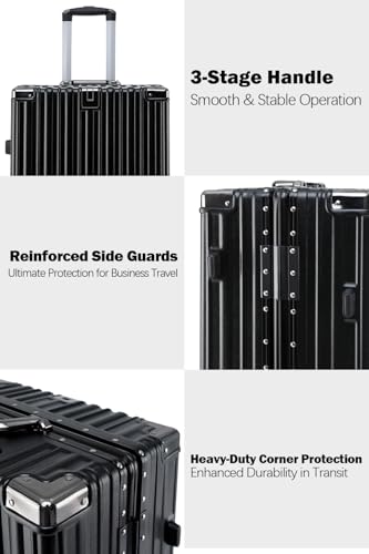 • SECURE ALUMINUM FRAME: Say goodbye to broken zippers with our zipperless hard shell luggage. Featuring a sturdy aluminum frame and easy-to-use latches, this suitcase offers better security and smoother access to your belongings.