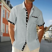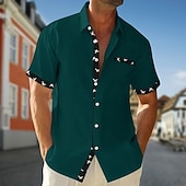 More information about Men's Shirt Summer Shirt Casual Shirt Beach Shirt Button Up Shirt Black White Wine khaki Army Green Short Sleeve Plain Printed Lapel Vacation Hawaiian Printing Clothing Apparel Polyester Fashion