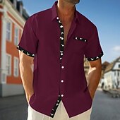 Men's Shirt Summer Shirt Casual Shirt Beach Shirt Button Up Shirt Black White Wine khaki Army Green Short Sleeve Plain Printed Lapel Vacation Hawaiian Printing Clothing Apparel Polyester Fashion 6