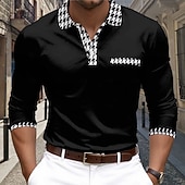 More information about Men's Houndstooth Golf Polos Shirts Long Sleeve Polo Shirts Collar Business Casual Outdoor Street Dailywear Buttons 3D Print Spring Fall Winter Black