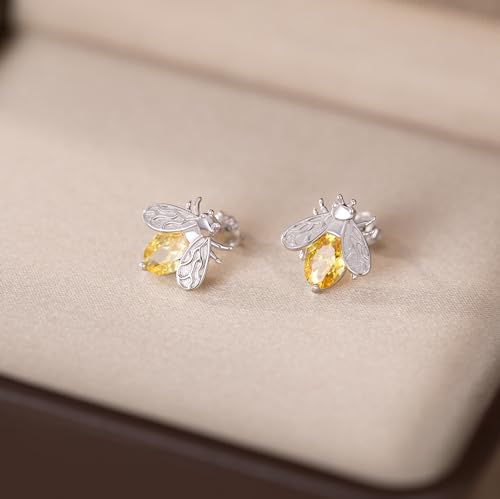 More information about SLUYNZ Solid 925 Sterling Silver Bee Earrings Stud for Women Teens Crystal Bee Stud Earrings