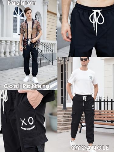 HOT ! OYOANGLE Men's Casual Graphic Print Elastic Waist Y2K Street Cargo Pants with Pockets Joggers